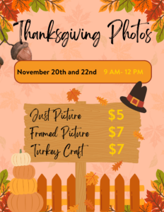 All pictures are $5 each, framed will be $7, and a turkey pawprint craft will be $7.