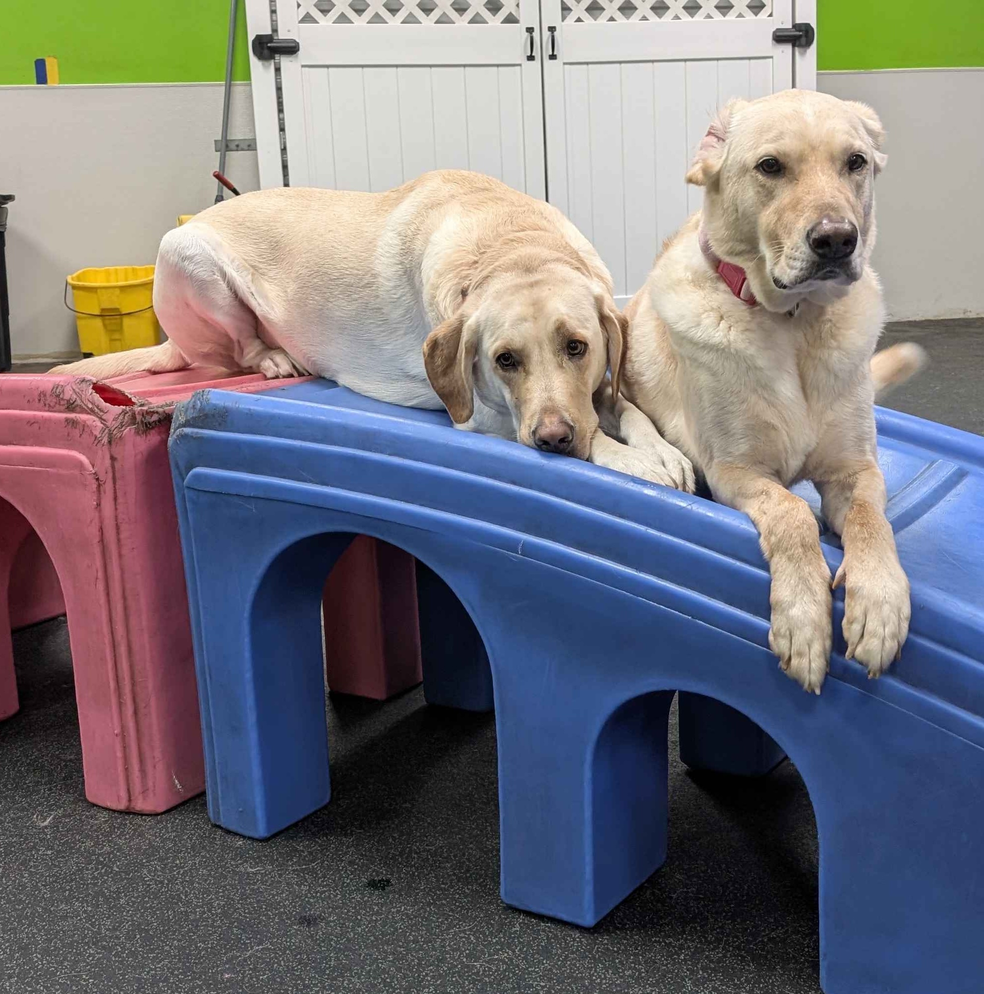 Just like children at daycare, dogs need both activity and downtime. Our dogs enjoy exercise + enrichment, followed by structured rest breaks to prevent overstimulation and support calm behavior.