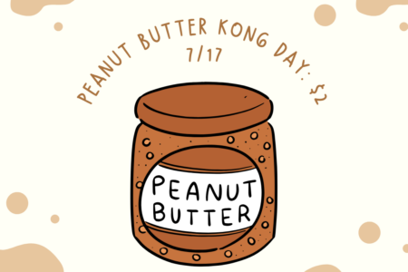 Treat your pup and give back! For just $2, you can give your dog a peanut butter-filled Kong—and 100% of proceeds go directly to the Dogtopia Foundation. It’s a small snack that makes a big impact.