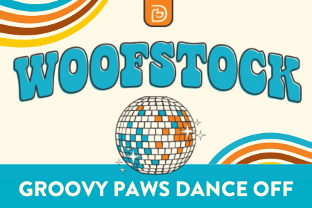 Get ready to shake those paws at our Groovy Paws Dance Off! Our Canine Coaches can’t wait to boogie down with all the daycare dogs to wrap up Woofstock week! There will be bubbles, disco lights, and music all day long to keep the good vibes rolling. And every pup will leave with a tie-dye bandana as a groovy souvenir to remember the fun!