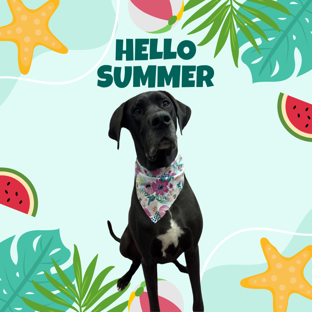 We hope you are enjoying your summer, pet parents! We are offering an adorable summer themed photoshoot for your pups! Sign up at the front desk today for $10 and you can take home the cutest summer photo of your pup!