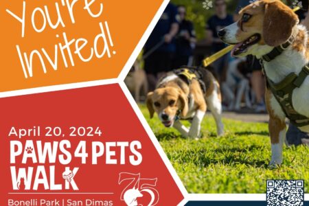 Join us, Saturday, April 20th, for a 1.5-mile walk at Frank G. Bonelli Regional Park in San Dimas to support the animals of the Inland Valley Humane Society & S.P.C.A. The Paws 4 Pets Walk is the largest pet walk in the Inland Valley! Starting at 8:00 a.m., you and your pet will enjoy activities, a vendor village, photos with your pet, contests, music, and a tail waggin’ fun day!