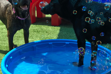 Bring your pup in every Monday morning to make a splash! We will have pools in the backyard & playrooms as well as bacon & peanut butter flavored bubbles! On the 10 and 24 ONLY we will add ice to the pools for extra fun! Let your dog come cool off in the water while playing with their bfffs!