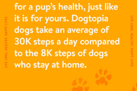 Exercise!!! Did you know that a Dogtopia dog take an average of 30,000 steps a day compare to the 8,000 steps of dogs that stay at home?