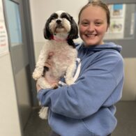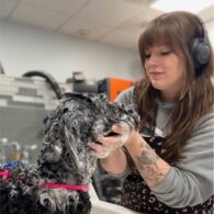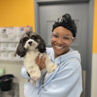 Courtney has been with Dogtopia since September 2024, but has been grooming dogs for nearly a decade! Growing up on a farm and being surrounded by animals her whole life led to her love of working in the animal world. She has a rescue Poodle mix named Kuma that she loves to dye funky colors and explore pet-friendly spots with. At Dogtopia, you can usually find her in the Spa, soaking up puppy love, or at the front desk trying to convince someone to dye their dog pink. She prioritizes the health and comfort of the pets in her care above all else and always works to make sure the pups have the best experience possible!
