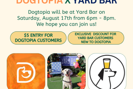 Dogtopia will be at Yard Bar on Saturday, August 17th from 6pm – 8pm. We hope you can join us! $5 entry for Dogtopia customers.
