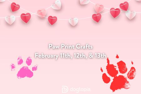 On February 11th, 12th, and 13th, your little pup-casso will have the chance to stamp their paws on an adorable Valentine’s day themed art project!
