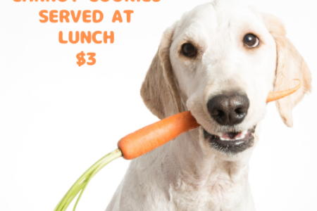 Add a tasty springtime snack for your pup! Today we are serving our delicious carrot cookies during lunchtime for just $3.