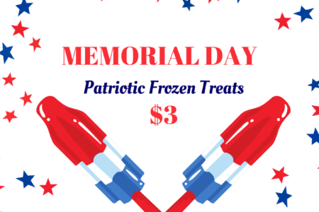 Today our pups can celebrate Memorial Day weekend with a cool and tasty frozen treat! Our patriotic frozen berry treats will be served at lunch for just $3!