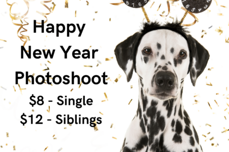 Ring in 2026 with our New Year’s Eve Photoshoot! Outfits and costumes are not required but always encouraged to make the photos extra festive. Single photos are $8 and sibling photos are $12, with the cooperation of each pup. Capture a special moment as we celebrate the year ahead!