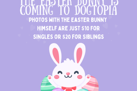 Join us for a photoshoot with the Easter Bunny himself! Single photos are just $10 and sibling photos are $20, providing cooperation from each dog. As usual, outfits and costumes are always encouraged but never required!