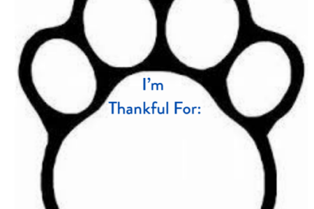 It is the month of giving thanks! Join us in sharing what you are thankful for by filling out a paw print and putting it on our Gratitude Wall! We will be doing this all month long!