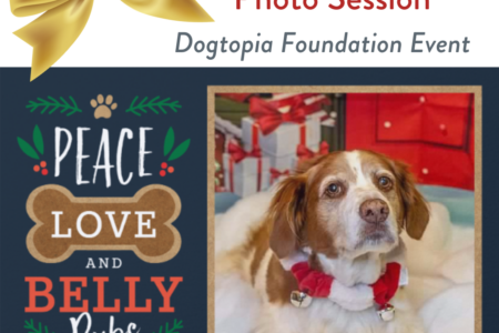 Do you want Holiday cards with your pup’s photo on them? Sign up for our Holiday Card Photo Session and you’ll get adorable cards to send to friends and family and help support the Dogtopia Foundation! $50 for 20 cards and digital copy, it will take 2 weeks for cards to arrive and you will be notified via text and email. Order forms must be completed day of event.