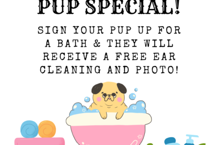 Today we will be offering a FREE ear cleaning (normally $10) to all pups that sign up for a bath spa service (LIMIT IS 15 DOGS)