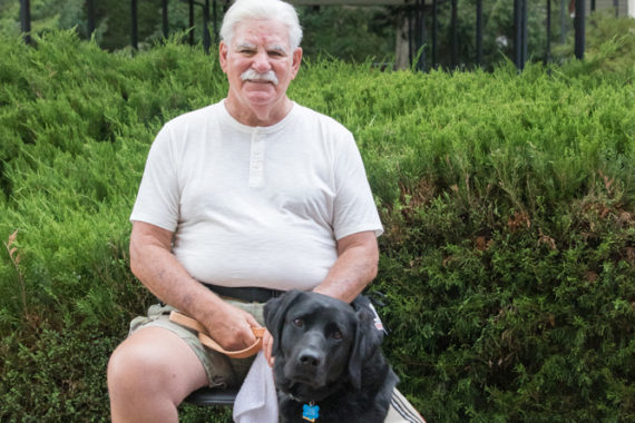 Harvey was our first sponsored service dog through America’s VetDogs. Harvey loves his role of support and friend to Army Veteran, Mark!