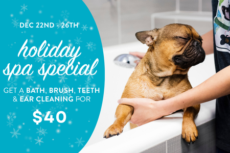 Our holiday spa special includes a bath, brush out, teeth & ear cleaning for $40!