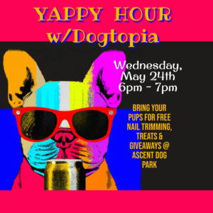If you’d be interested in setting up a yappy hour at your apartment complex, please call our front desk with the name of the complex, along with your information. We look forward to seeing you all this summer. 🙂