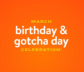 Time to celebrate all the dogs with a March birthday or gotcha day! Check with your location to see what they have planned for your pup’s special day.