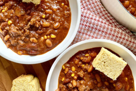 Get your pup a bowl of our beef chili w/ cornbread bites $5 foundation donation