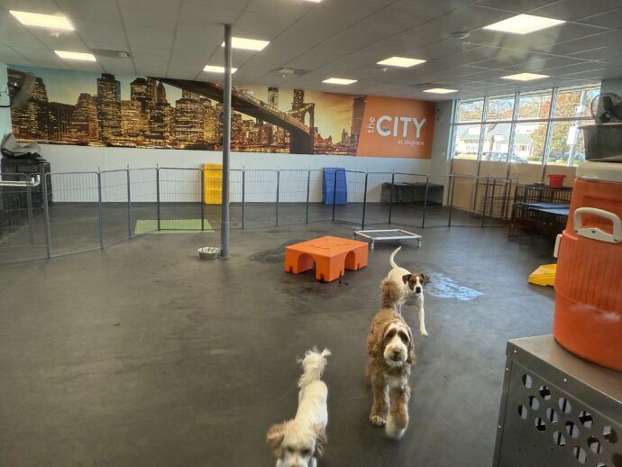 With dog obesity on the rise, staying physically fit is more important than ever. Plus, better doggie health helps ensure a longer doggie life. At Dogtopia, dogs enjoy open play in our spacious, climate-controlled playrooms that feature compressed rubberized flooring designed with your dog’s comfort in mind.