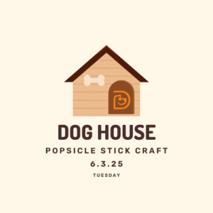 Dog house popsicle stick craft! Be sure to sign up in the lobby.