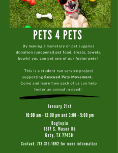 Stop by on Saturday 2/11 between 10-12pm or 3-5pm to meet, support, & PET a foster dog!