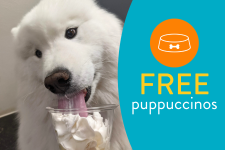 Every daycare dog gets a free puppuccino treat at lunch time!