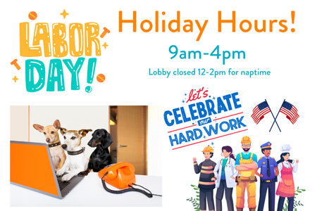 In honor of Labor Day our Holiday Hours will be 9am-4pm (naptime is still 12-2pm when lobby will be closed for pick up and drop off) Thank you!