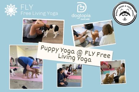 Looking for the cutest way to relax and unwind? Join us for Puppy Yoga! 🐶🧘♀️ We’re teaming up with FLY Free Living Yoga and Doggy Noses and Yoga Poses for our third Puppy Yoga event—an unforgettable class where gentle yoga meets playful, adoptable puppies!