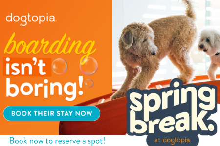 Traveling for Spring Break? Plan ahead and book your dog’s sleepover now while there are still spots available! At Dogtopia your dog will have the BEST DAY EVER playing with their BFFFs all day so they can sleep hard at night! It’s kind of like sending them to sleepaway camp! You can watch on the cameras during open play and we offer spa services so your dog can come home tired and clean! Just what you want upon your return home!