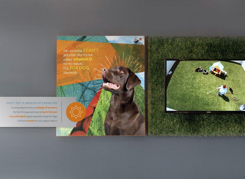 All of our spacious indoor playrooms are fully climate-controlled to ensure your dog’s comfort. Each playroom has a separate HVAC unit, preventing cross-ventilation from other playrooms and ensuring proper air exchange from the outside, so even though the dogs are indoors, they are still getting fresh air like they would if they were outside. The rubber flooring is specially designed with your dog’s comfort in mind; it’s easy on paws, hips, and joints, which is especially beneficial for older dogs and dogs suffering hip dysplasia and other joint ailments.