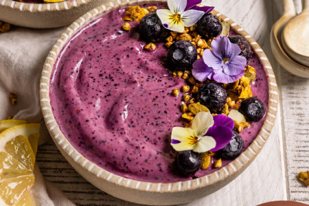 Spring blueberry bowl with honey, graham cracker , and bananas for a nice refreshing start to spring.