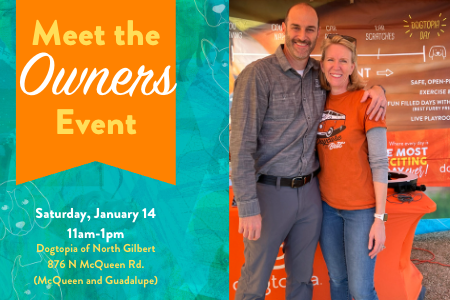 We are bringing Dogtopia Daycare to North Gilbert and we’d love to meet you! While we’re under construction, stop by and say hello. This Saturday, Jan. 14 we’ll be on site to meet you and your pups, give away some swag, answer your questions, and talk about our $99/week Founder’s Offer. It’s the lowest rate we’ll ever offer!