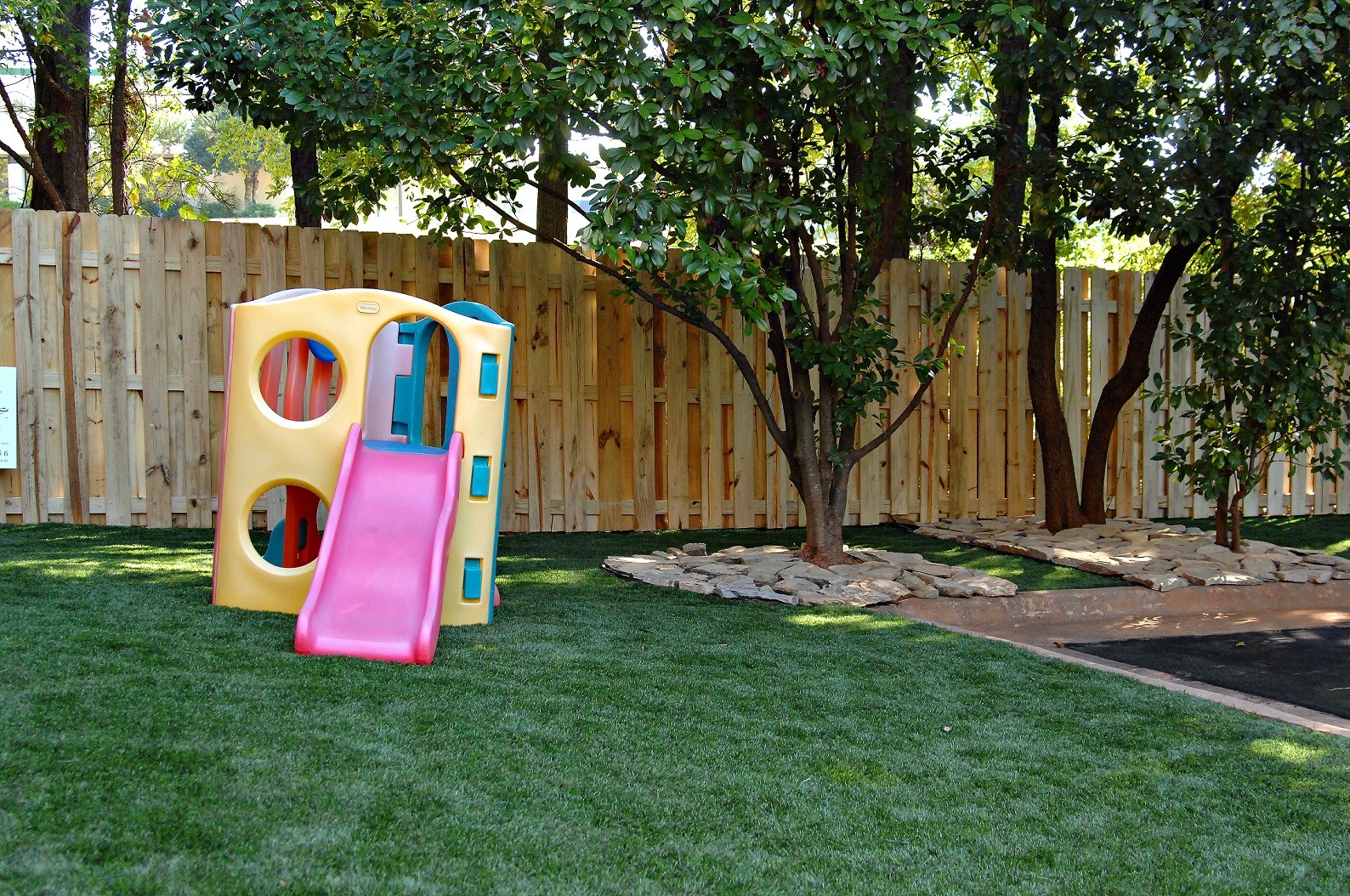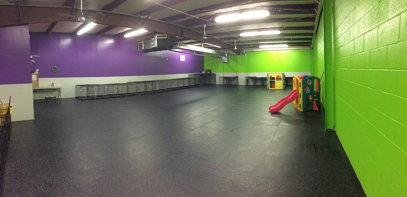 Our facility boasts 7,056 square feet of space. Our three playrooms (Toy Box, Romper Room and Gym), are completely enclosed and climate-controlled. Our outside area adds another 1,500 square feet of room to play. The playrooms are cleaned and disinfected twice a day by our attentive team.