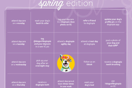 April just got a whole lot more exciting! Stop by the front desk and grab your Spring Bingo card—play all month long for a chance to win a VIP Experience Day for your pup! The first Pet Parent to get a bingo will win a fabulous prize that includes The Works Spa Package (bath, teeth brushing, nail trim, and ear cleaning), Personal Pet Time, and a Brain Game for your pup’s next visit. Don’t miss out—get your card today and let the games begin!