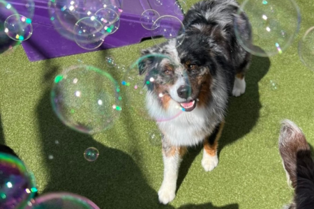 Fun, friends, and bacon—what more could a dog want? Watch your pup jump, chase, and pop deliciously scented bacon-flavored bubbles on camera all day long!