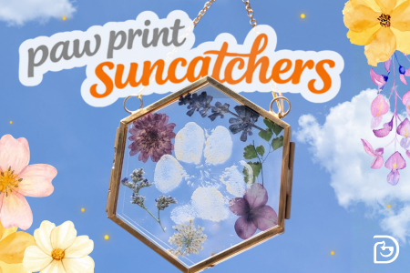 Your pup can create a mini enchanted forest of their own with our paw-print suncatcher craft! Our Dogtopia team will help your dog create a paw print masterpiece surrounded by dried flowers, framed, and ready to hang in your window at home!