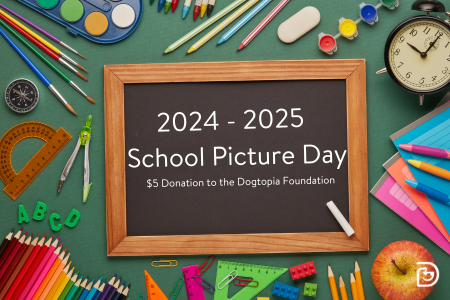 The kids are heading back to school & we’re celebrating with Daycare pictures! For a $5 donation to the Dogtopia Foundation, your pup will come home with their very own school picture.