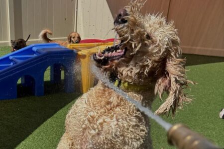 The Pups favorite day…..WATER DAY! Swimming pools, sprinklers, garden hoses, ice, and so many more options.