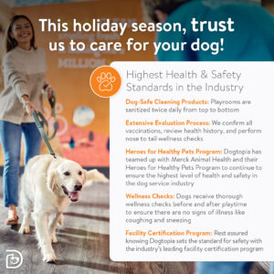 So you never feel separated from your pup, we have webcams in every playroom – allowing you to check in on your furry family member and watch them play throughout the day (excludes naptime and overnight). You can easily access our webcams using your computer or smartphone.