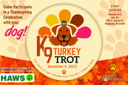 Come join us at the K9 Turkey Trot! Think Pawsitive Dog Training is hosting this fun event that will have a 1 mile fundraiser walk, games & activities for the dogs, a costume contest and vendors! All proceeds go to HAWS!