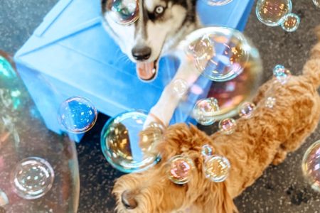 Bring your pup in for some fun in the suds! We are having a Bubble Party in our playrooms with our Peanut Butter flavored pup-safe bubbles!