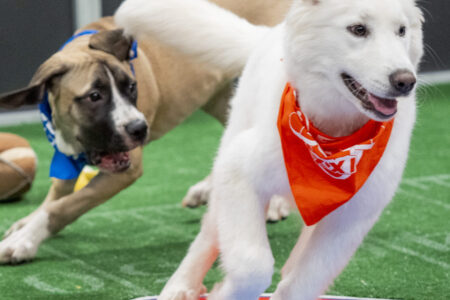 Show your support for the Puppy Bowl team you’re rooting for by purchasing your pup a special RUFF or FLUFF treat at naptime! All $5 donations go towards uniting service dogs with veterans through our Dogtopia Foundation and you will be entered into a raffle for a chance to win a Puppy Bowl Gift Basket! Everyone wins with this worthy cause!
