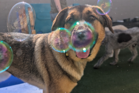 Dog-safe flavored bubbles will fill the playroom for some extra play time fun!