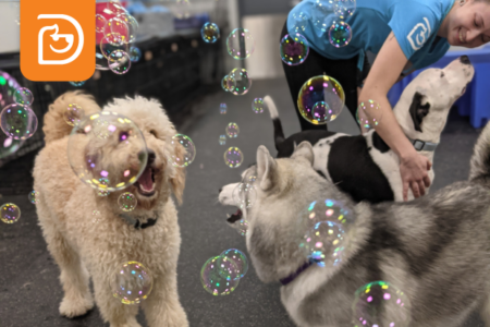 Our Canine Coaches are throwing a playroom party with peanut butter and bacon flavored bubbles all day long! At Dogtopia bubbles are much more than fun, they help your pup build confidence and coordination skills.