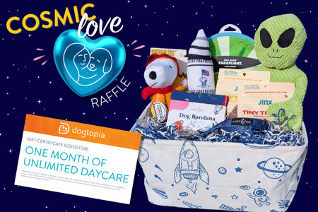 We’re raising funds for the Dogtopia Foundation to sponsor the training of our next service dog for a Veteran. You can help by entering our Cosmic Love Raffle from May 1st – May 31st!