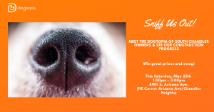 Come Sniff us Out! The weather is supposed to great this Saturday. Meet the Dogtopia of South Chandler owners, win some swag and check out our construction progress.