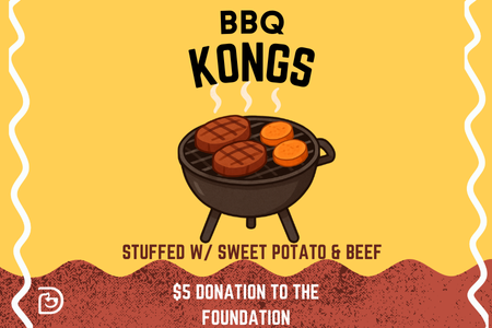 Today, our daycare pups are sinking their teeth into BBQ Kongs—stuffed with tasty sweet potatoes, beef, and tail-wagging joy—for a $5 donation to the Dogtopia Foundation!