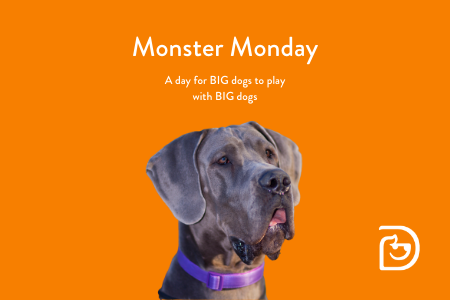 Do you love big dogs? Us too! Today, we are celebrating BIG Dogs with Monster Monday. Bring in your over 90 lbs. dog today for a chance to play with other BIG Dogs.