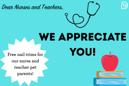Nurses and teachers—stop by Dogtopia of South Elgin and enjoy a FREE nail trim for your dog! You’ve taken care of so many—now let us take care of you (and those adorable paws!).